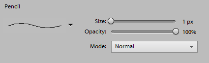 - पेंसिल टूल का चयन करें और इसका आकार 1 px और अपारदर्शिता को 100% पर सेट करें