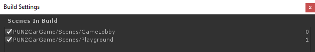 - बिल्ड सेटिंग्स में गेमलॉबी और प्लेग्राउंड दोनों दृश्य जोड़ें: