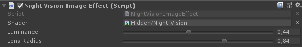 }- किसी भी कैमरे में NightVisionImageEffect स्क्रिप्ट संलग्न करें
