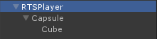 - प्लेयर मॉडल को 'RTSPlayer' गेमऑब्जेक्ट के अंदर ले जाएं (नोट: पेरेंटिंग से पहले, सुनिश्चित करें कि 'RTSPlayer' को प्लेयर मॉडल के नीचे रखा गया है)
