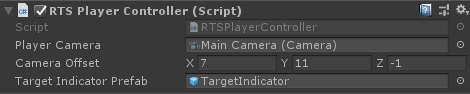 - और अंत में, 'RTSPlayer' चुनें और RTSPlayerController स्क्रिप्ट में सभी आवश्यक वेरिएबल असाइन करें: