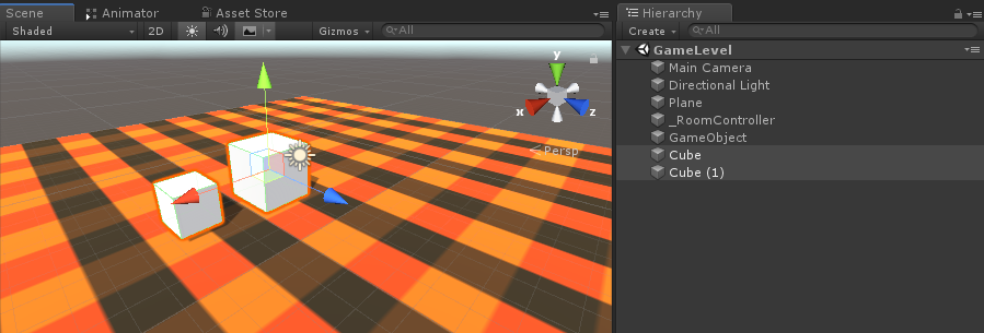 - "GameLevel" दृश्य खोलें और कुछ क्यूब बनाएं (गेमऑब्जेक्ट -> 3डी ऑब्जेक्ट -> क्यूब)