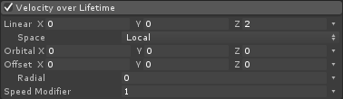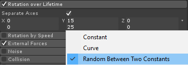 - पार्टिकल सिस्टम में इन मॉड्यूल को सक्षम करें: उत्सर्जन, आकार, जीवनकाल पर वेग, जीवनकाल पर रंग, जीवनकाल पर आकार , जीवनकाल में घूर्णन, बाहरी बल, रेंडरर।