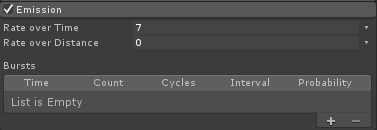 - "Particles" गेमऑब्जेक्ट में एक पार्टिकलसिस्टम घटक जोड़ें